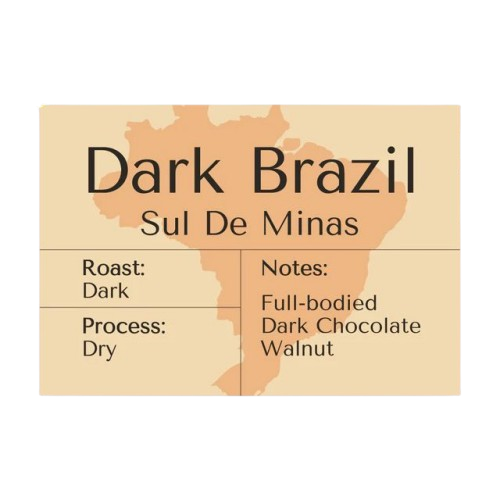 This is a true dark roast option of our single origin bean from the the southern end of the Minas Gerais state in Brazil. By extending the developmental portion of the roast, our roaster has perfected a dark roast that increases both the body and finish of the coffee. Feels heavy on the tongue and leaves each sip with notes of walnut. Approachable yet complex; excellent for drip and/or espresso.
